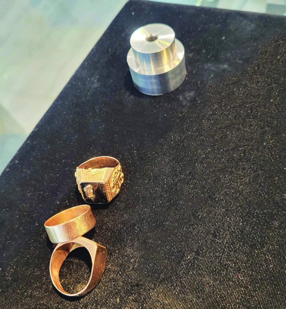 Rabbitt said the ring is a surprise for her fiancé. “He knows the gold for his ring came from his grandfather’s rings. I got his and his family’s permission to melt down the rings,” Rabbitt said. She estimates the rings are about 90 to 100 years old. “The rings are from the USSR because his family came from Odesa, Ukraine, which was part of the USSR 30 years ago,” Rabbitt said. “When you have heirlooms, you feel bad for melting them down. Now they are not the originals your family wore. But also, when they’re sitting in a box and maybe nobody can wear them because they can’t fit or it’s not their style, they’re not any good that way. At least turning them into something you are going to wear, it’s something you can see every day.”